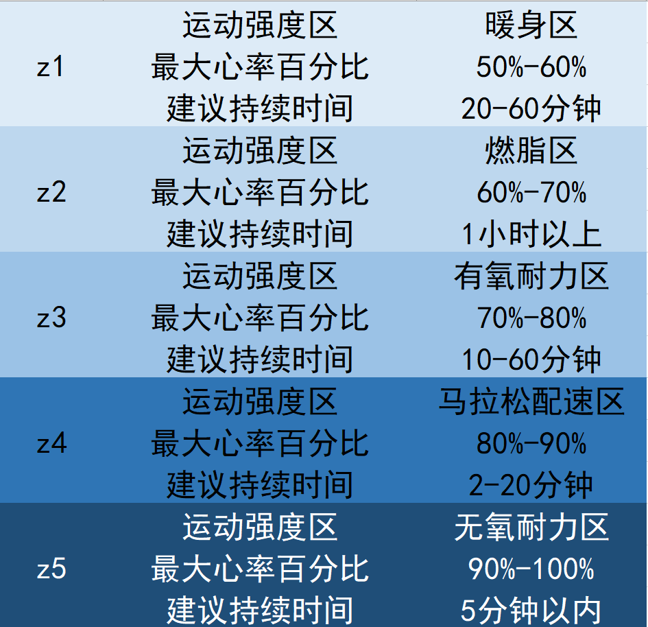 选择符合自己强度的运动,就要根据最大心率的百分比来确定。最大心率,也就是你的心脏最快可以跳多快。目前比较流行的计算公式是“ 220-实际年龄”。不同心率区间代表不同的运动强度以及这个强度下的训练效果。