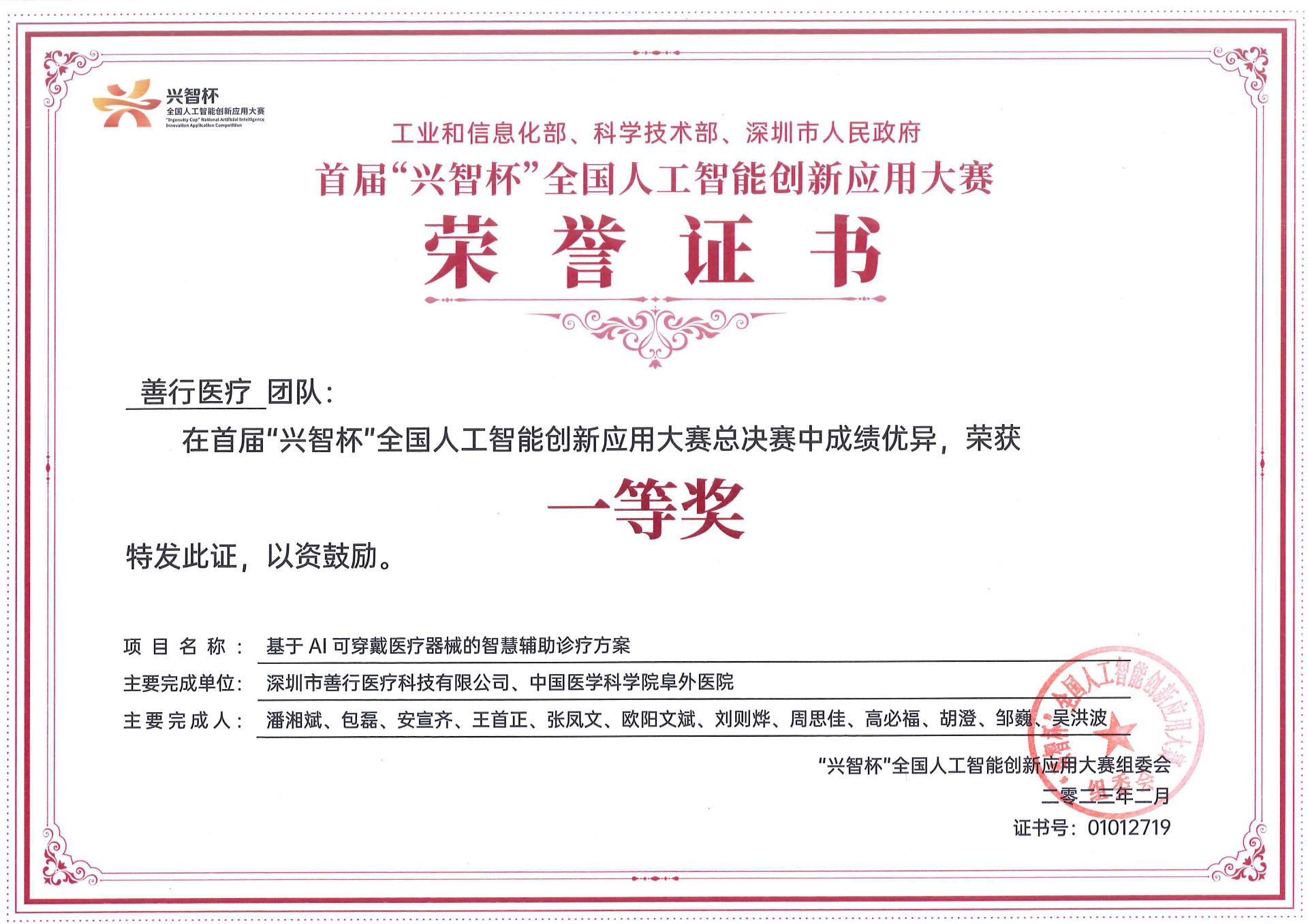 这是一条少有人走的路。凭借前沿的科技创新能力以及优越的突破性用户智能体验性能,2022年,善行医疗与云南阜外医院揭榜挂帅“心血管疾病人工智能医疗器械真实世界数据应用平台”项目。在今年,善行医疗“基于AI可穿戴医疗器械的智慧辅助诊疗方案”,获得了中国人工智能最高规格赛事——首届“兴智杯”全国总决赛一等奖。