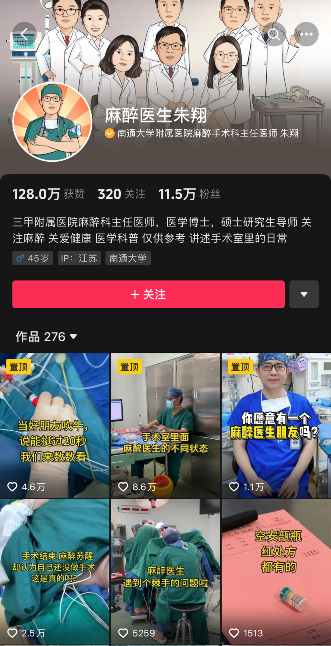 在朱翔医生2022年12月的一则视频中,他深情地写道:“在手术室里,陪伴你时间最长的是我们麻醉医生。每个清晨,当手术灯还未亮起,当手术室的走廊还寂静无声,有一群人已经早早地开始了一天的工作。那就是我们麻醉医生……我们需要提前做好充分的准备工作,确保手术的顺利进行;还需要陪伴在病人身边,增强病人的信任感和安全感。”由于麻醉医生工作强度大、时间长,常常需要在深夜下班,过劳的风险也相对较高。