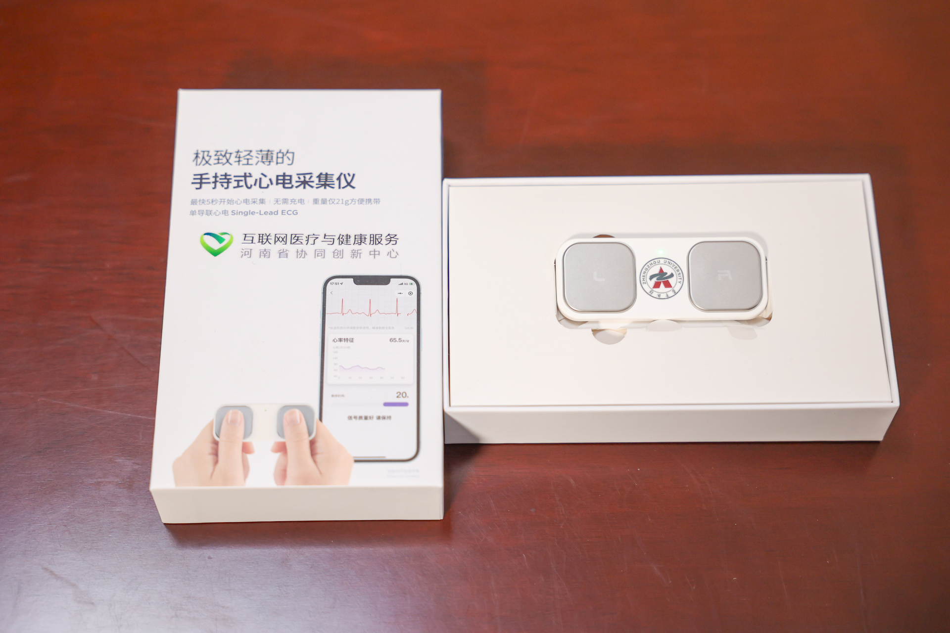 刚进办公室,他就兴致勃勃地拿出一崭新的手持心电卡和一件柔性心电衣,指导着顶端新闻记者扫码体验。