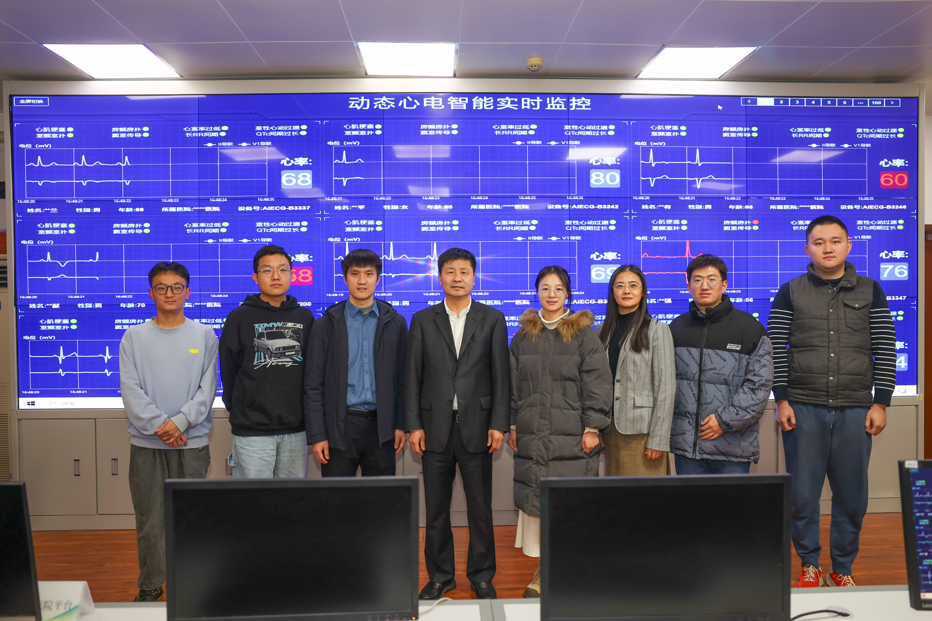 这8 年来,针对传统心电监测技术难以捕捉隐匿性心电异常和突发性心电事件的难点,以及监测设备佩戴繁琐、舒适性和便捷性差、无法满足多场景监测需求的堵点,他带领樊好义、潘赟以及博士生硕士生等团队成员,在柔性可穿戴信号采集、海量心电数据智能标注、心电人工智能预警和大规模人群高并发服务平台等方面,突破多个关键技术瓶颈,利用互联网、大数据、人工智能、云计算等技术,研发了心电人工智能服务平台,实现了“常、长、早”的预期效果,“可以说,革新了国内心电监测服务的应用场景。”