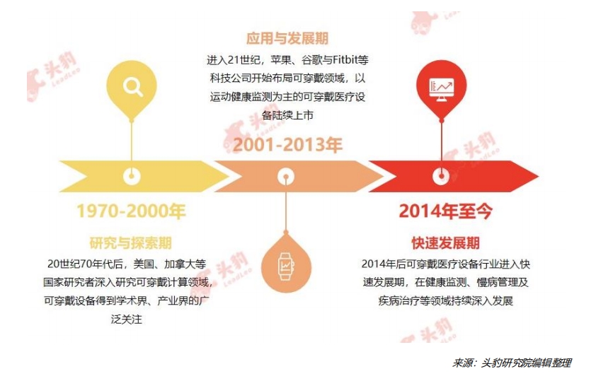 2014 年后可穿戴医疗设备行业进入快速发展期,在健康监测、慢病管理及疾病治疗等领域持续深入发展。