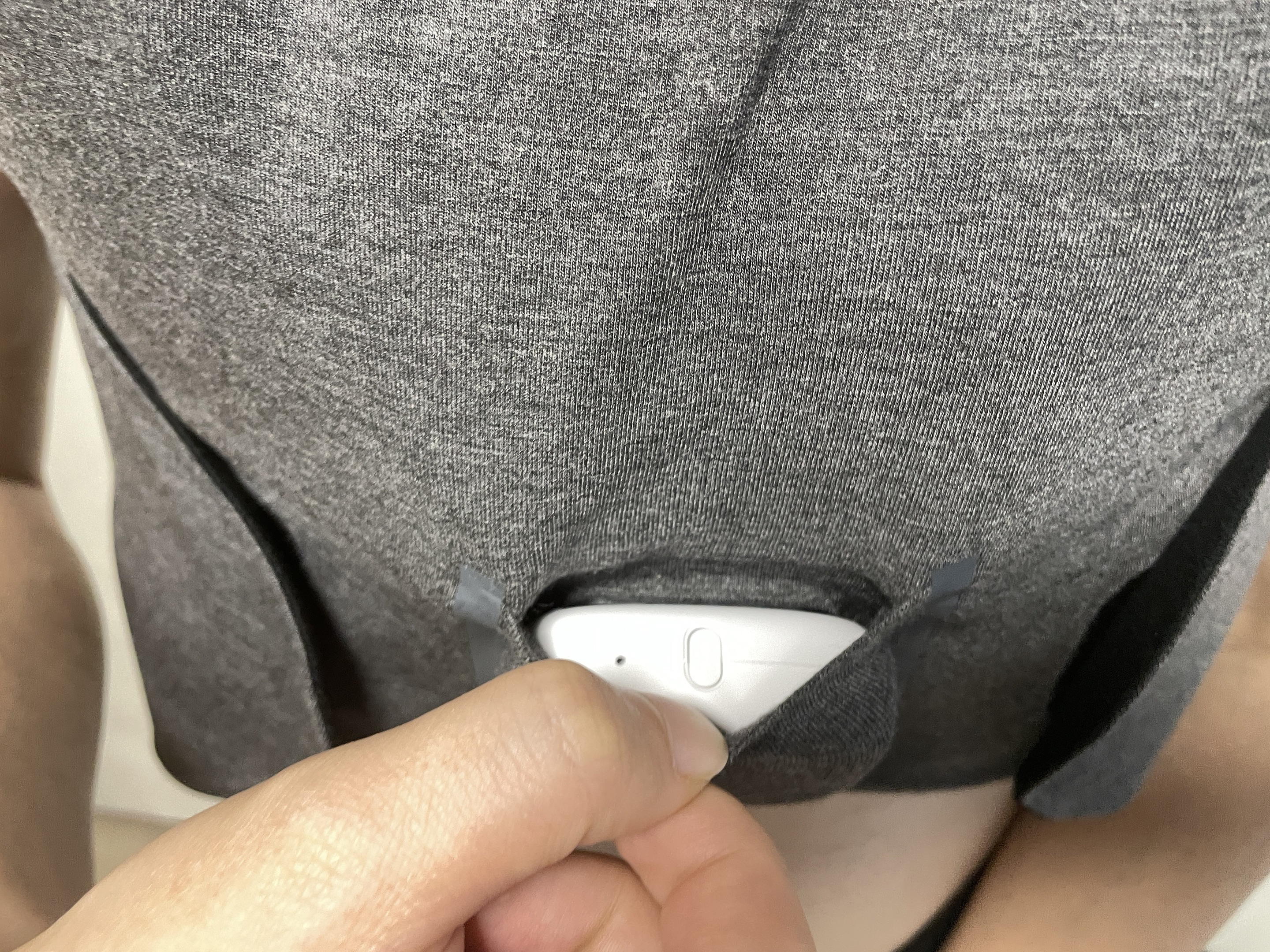 将心电盒装入胸前的小口袋,听到“啪”地一声说明接口正确