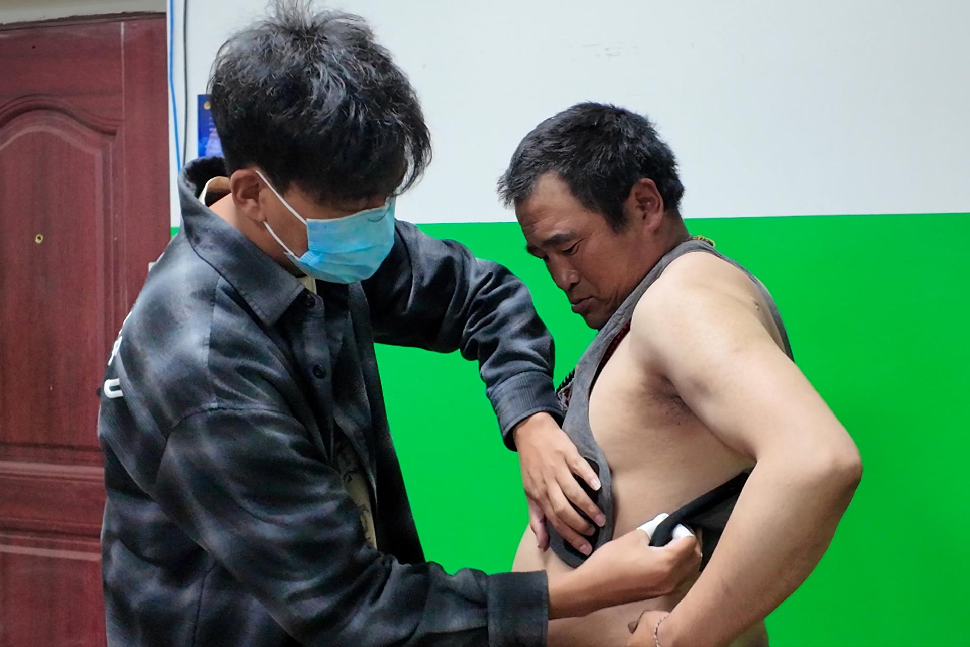 善行医疗团队现场示范了智能心电衣穿戴流程,做到“几分钟完成准备,安心参与筛查”。